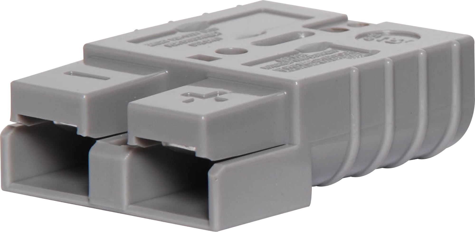 Genuine Anderson Power Grey SB50 50A DC power connector. These heavy duty DC plugs feature a reversible gender design (the same plug can be used as both male and female). Not suitable for connecting or disconnecting circuits under load. Supplied with connector housing and two crimp lugs.