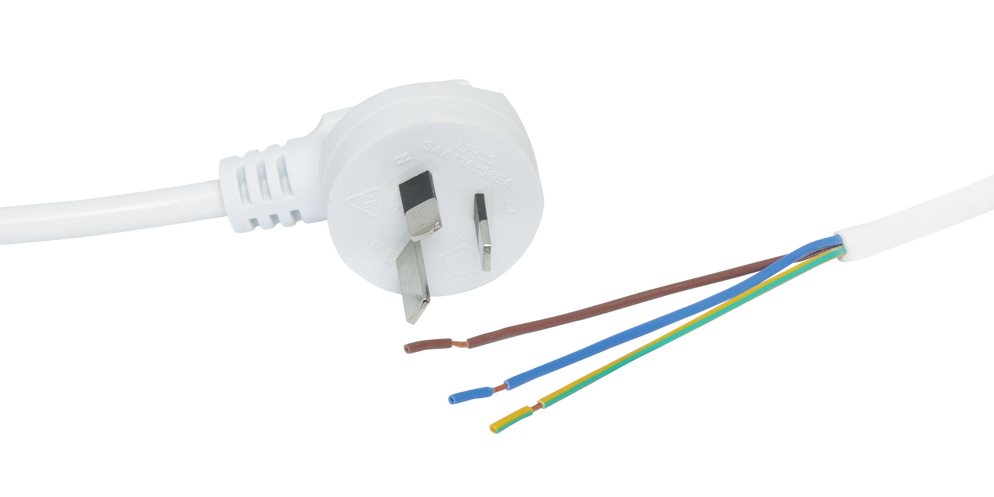 7.5A 3 pin 2m white, bare ends 6.4mm diameter. Energy Authority approved.