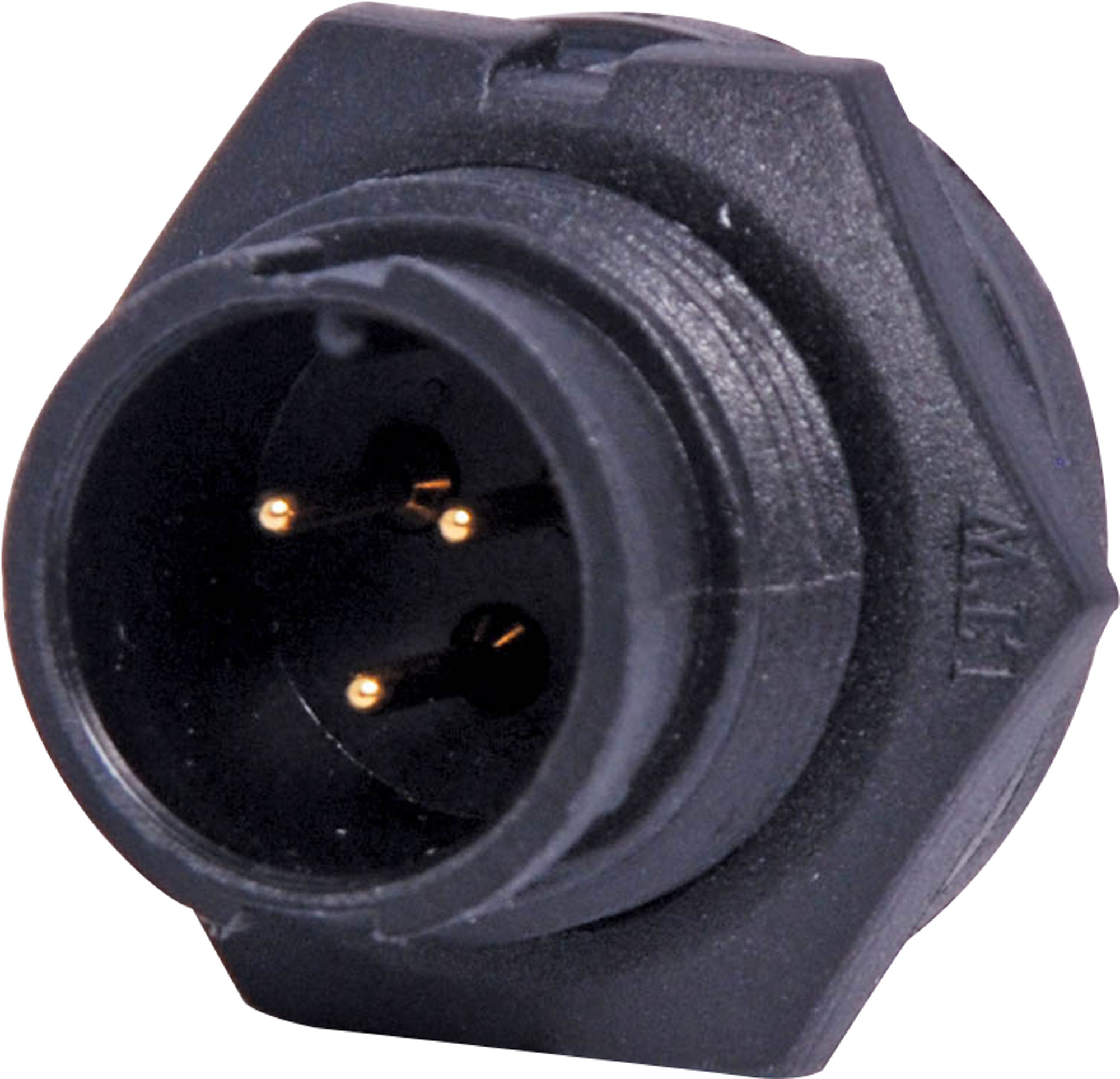 Waterproof IP67 rated 3 Pin Male Solder cup chassis connector for installations outdoors or in areas prone to moisture build up. Lock Type mating ring. 5A rated.