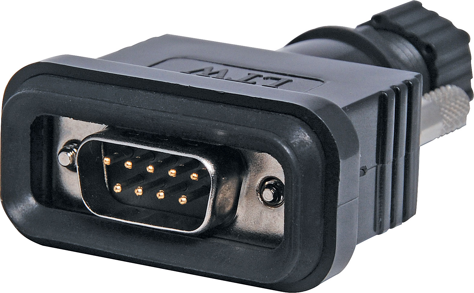 IP66 rated, inline, solder type, DE9 male connector. Suits data or low voltage/current applications.