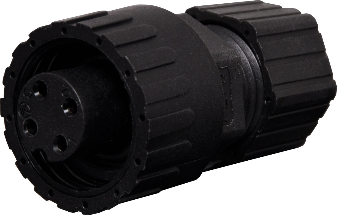 IP66 rated waterproof 4 pin connectors for installations outdoors or in areas prone to moisture build up. 12A rated. Note: Compatible with Amphenol® C16 series connectors.