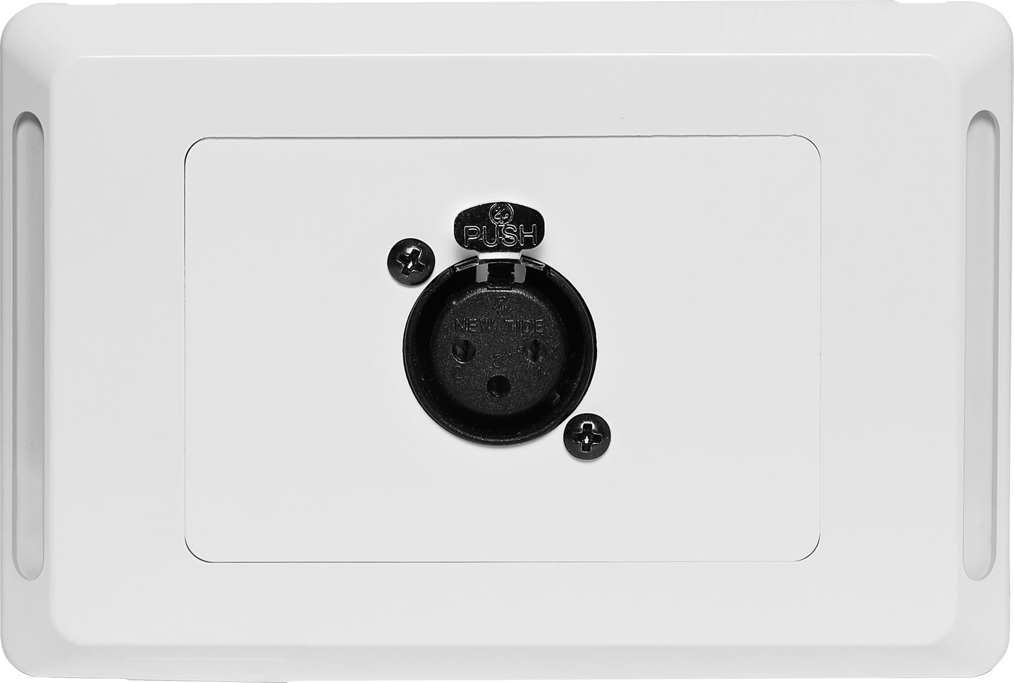 3 pin XLR microphone connector fitted to a Clipsal Pro Series wall plate which has been specifically designed for commercial building installations.