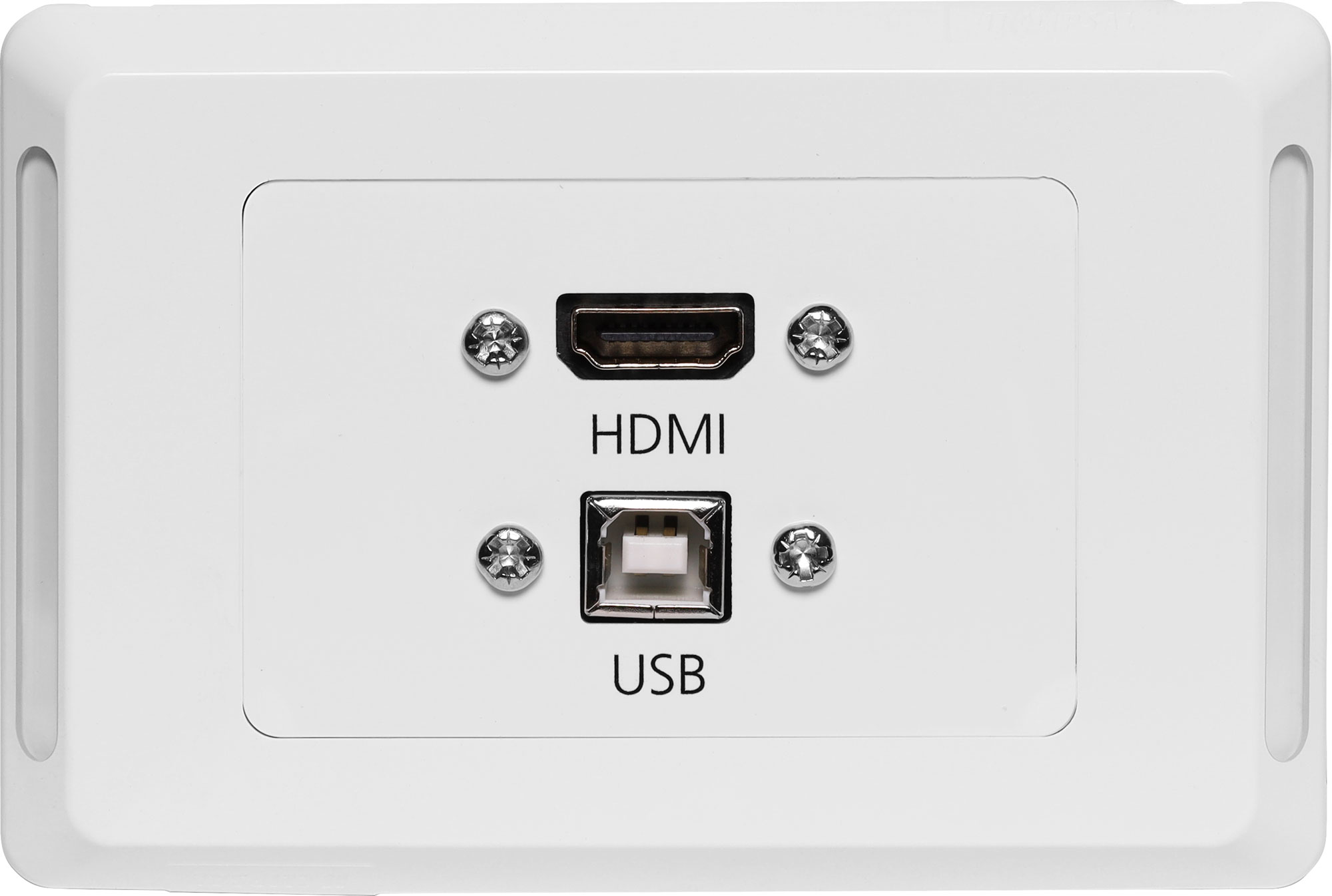 HDMI and USB type B connections fitted to a Clipsal Pro Series wall plate which has been specifically designed for commercial building installations. HDMI high speed with Ethernet connection. Rear is fitted with 150mm fly leads with HDMI and USB type A socket for easy connection. About Clipsal Pro Series Wallplates The Clipsal Pro series has been specifically designed for commercial building installations and is the new standard for retail, offices, schools and public spaces. The secured fascia plate can only be removed with a tool preventing tampering and accidental removal due to impact etc. Available in white and black, they will blend into any commercial environment.