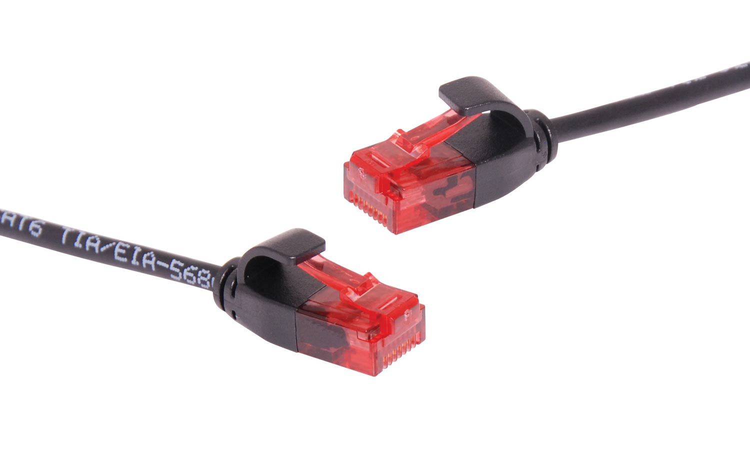 Ultra thin cables ideal for high density patch panel use. Cuts down on the bulk whilst maintaining Category 6 gigabit performance. Backwards compatible with Cat5/Cat5e. 8 Pin RJ45 Male to 8 Pin RJ45 Male Black 2m - Category 6