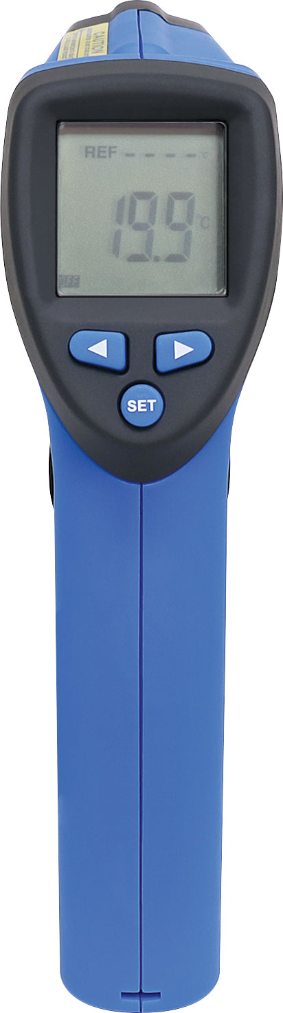 This handheld IR thermometer offers laser pointer guide and excellent accuracy between -50°C and 580°C. The LCD indicates the measured reading & emissivity value. A new temperature reference mode allows quick verification of ‘within range’ temperatures, indicated by changes in LCD backlight colour (green OK, red HIGH, blue LOW). Simple point and click operation with laser for added accuracy. The sensor provides a 13:1 distance to spot ratio, ideal for most every day applications (see information below about spot ratio). Last reading is automatically held on screen when the trigger is released. Ideal for use in hard to get to or dangerous places, even while equipment is operating eg: measuring turbo, exhaust, bearing, motor, air conditioning temperatures. Also great for food safety. Includes 9V battery. Please Note: Our thermometer range are not considered medical grade devices. Accuracy ratings are shown in the specifications below.