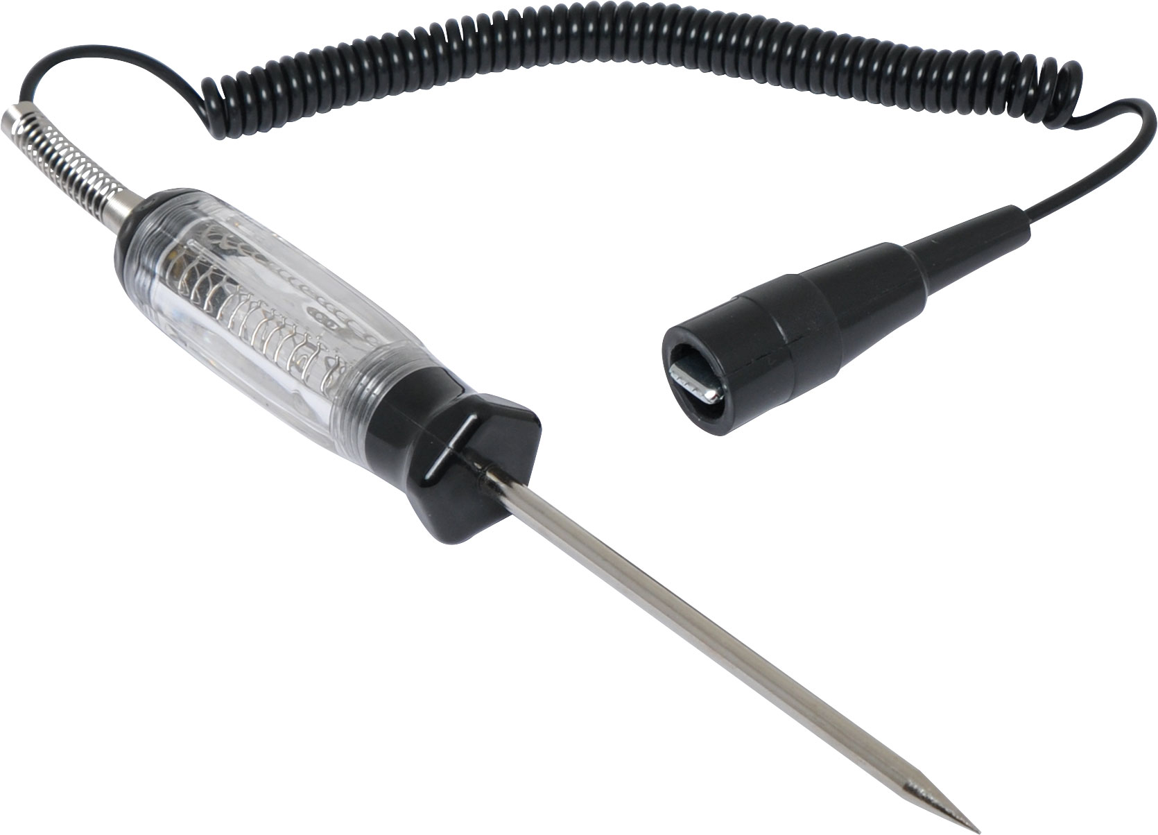 This voltage test probe is a handy tool for troubleshooting wiring faults in any 6-24V DC vehicle. Instant visual indication when voltage is present. It features a 250mm curly cord cable with crocodile earth clip allowing you to trace and test wiring paths easily. 6-24V DC range is ideal for a variety of applications including motorbikes, trucks and boats. Handle length: 228mm. Note: Not suitable for AC wiring, DC wiring only.
