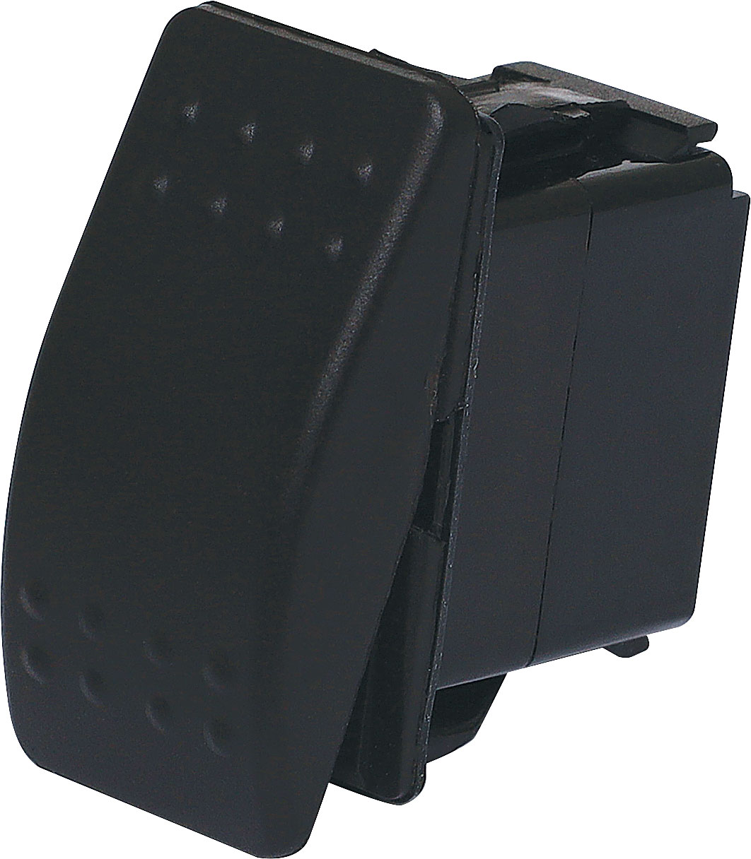 A marine/boat style flat rocker switch suitable for use in 12V DC or 24V DC power systems. IP67 rated weatherproof design. Suits panel thicknesses up to 4mm. Panel Cutout: 21 x 36.4mm approx. Will vary with panel thickness.