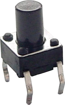 A standard SPST momentary tactile switch with 4.5mm high plastic actuator. Overall switch height from PCB surface, 8mm.