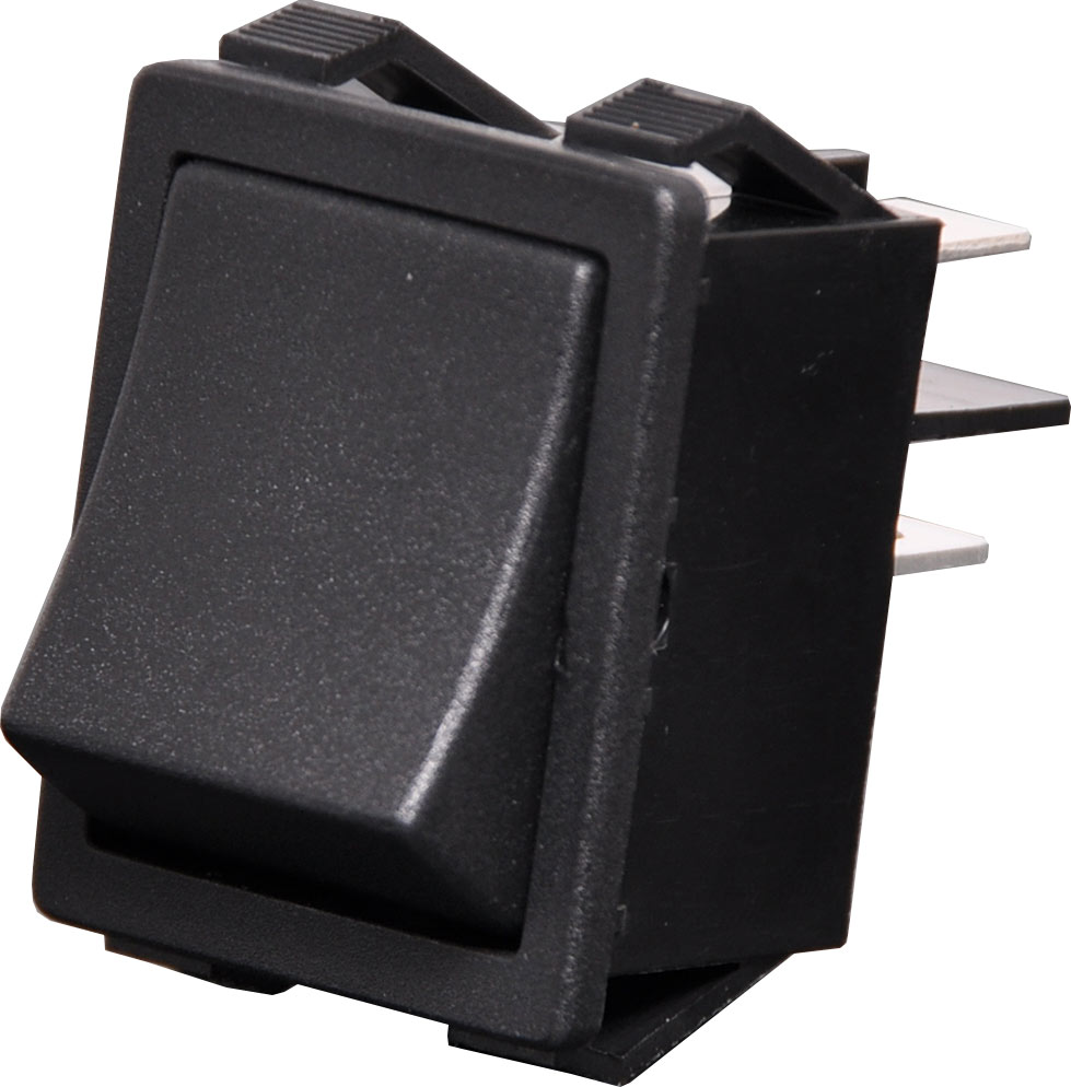 A heavy duty DPDT momentary ON/OFF panel mount rocker switch. The switch configuration is momentary one way, returning to centre-off after release. Rated for 16A @ 250V AC for use with mains powered equipment.
