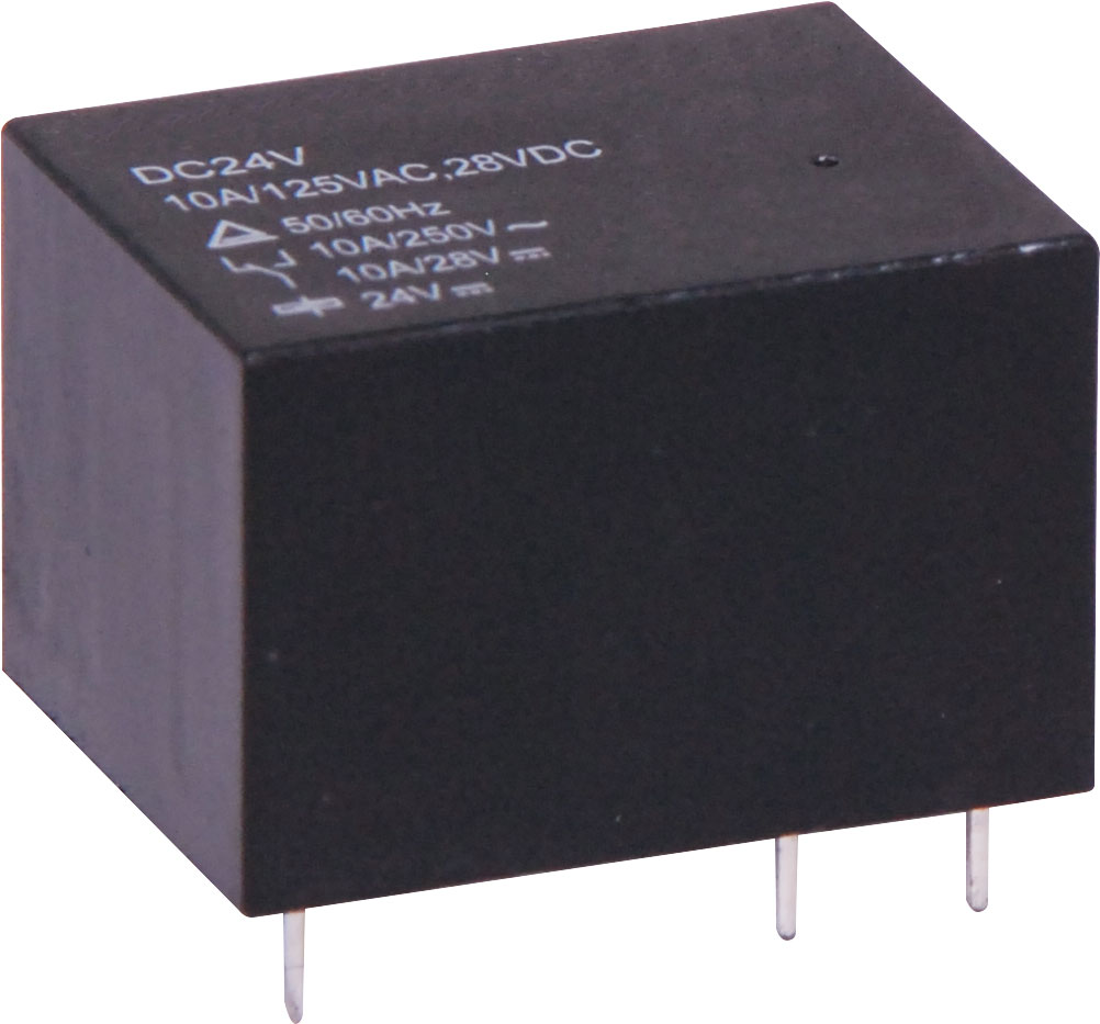 10A SPDT relay. PCB mount style. 24V DC coil. Non-sealed type, suitable for flow soldering.