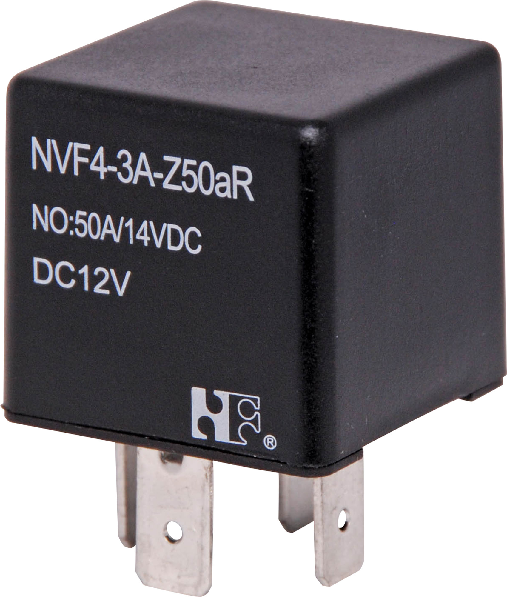 A 50A SPST relay. Automotive type. 12V DC coil. Suitable for automotive applications such as alarms, driving lights, horns, fog lights etc. Note: Not suitable for ac use.