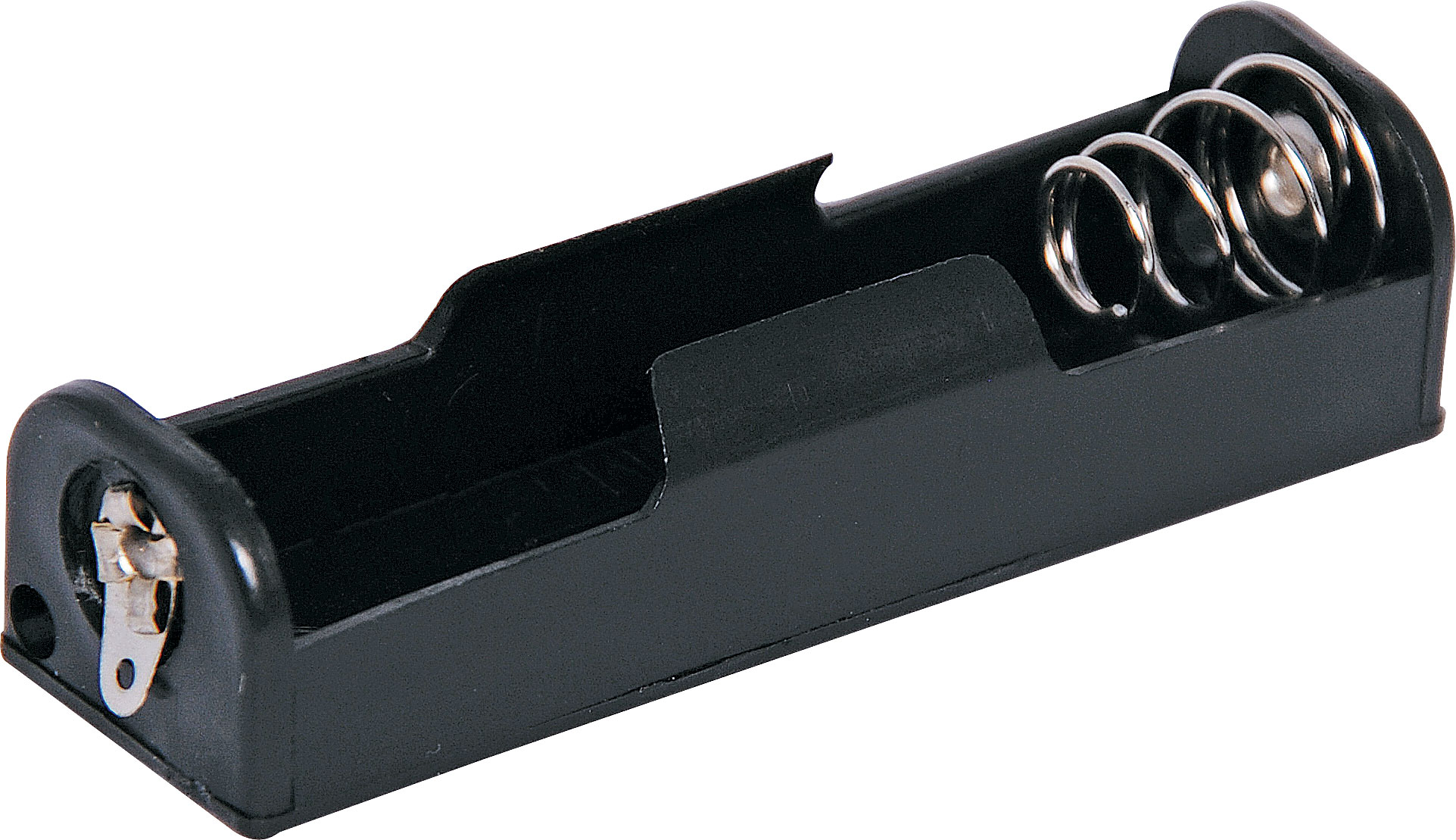 Single AA Plastic battery holder. Dimensions (including battery snap terminal): 58 x 17 mm