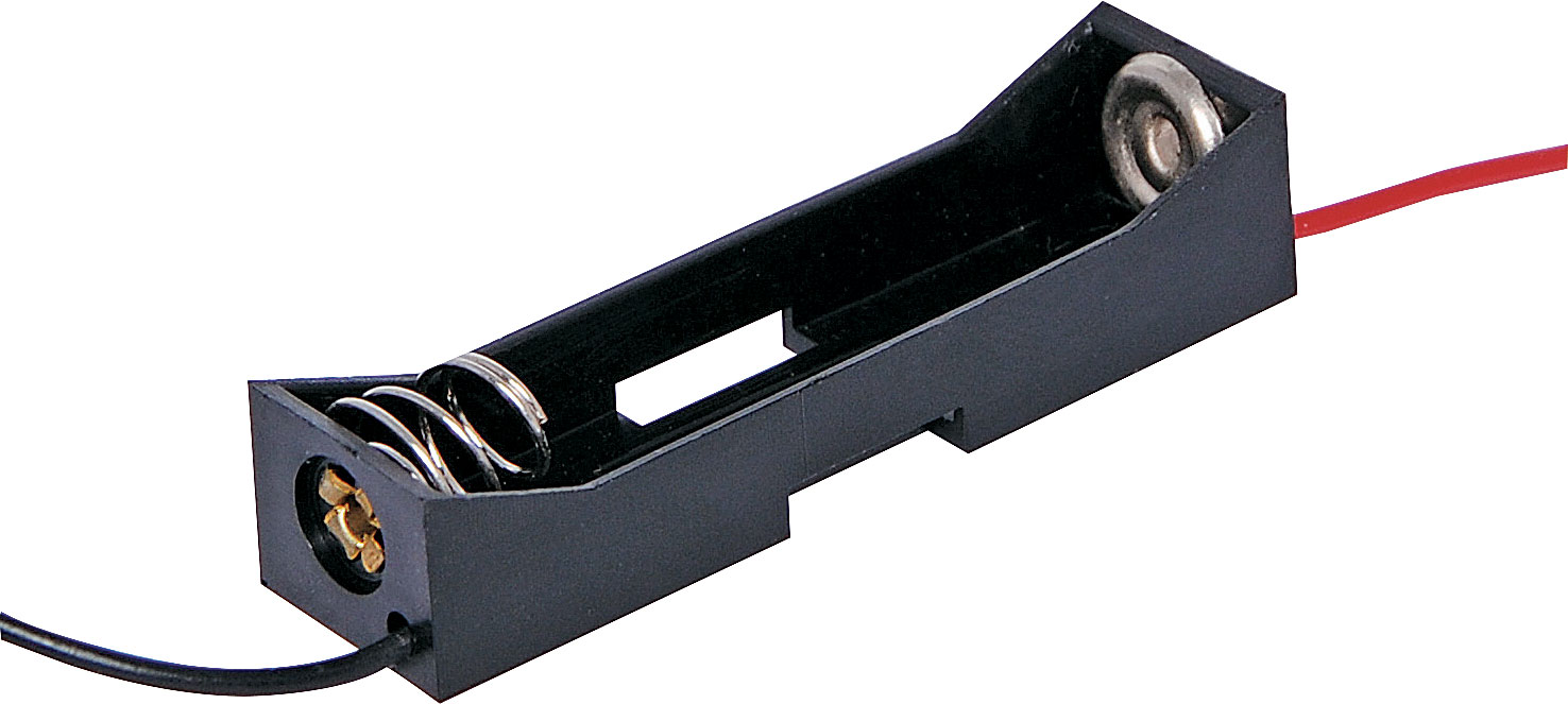 Single AAA Plastic battery holder. Supplied with fly leads.