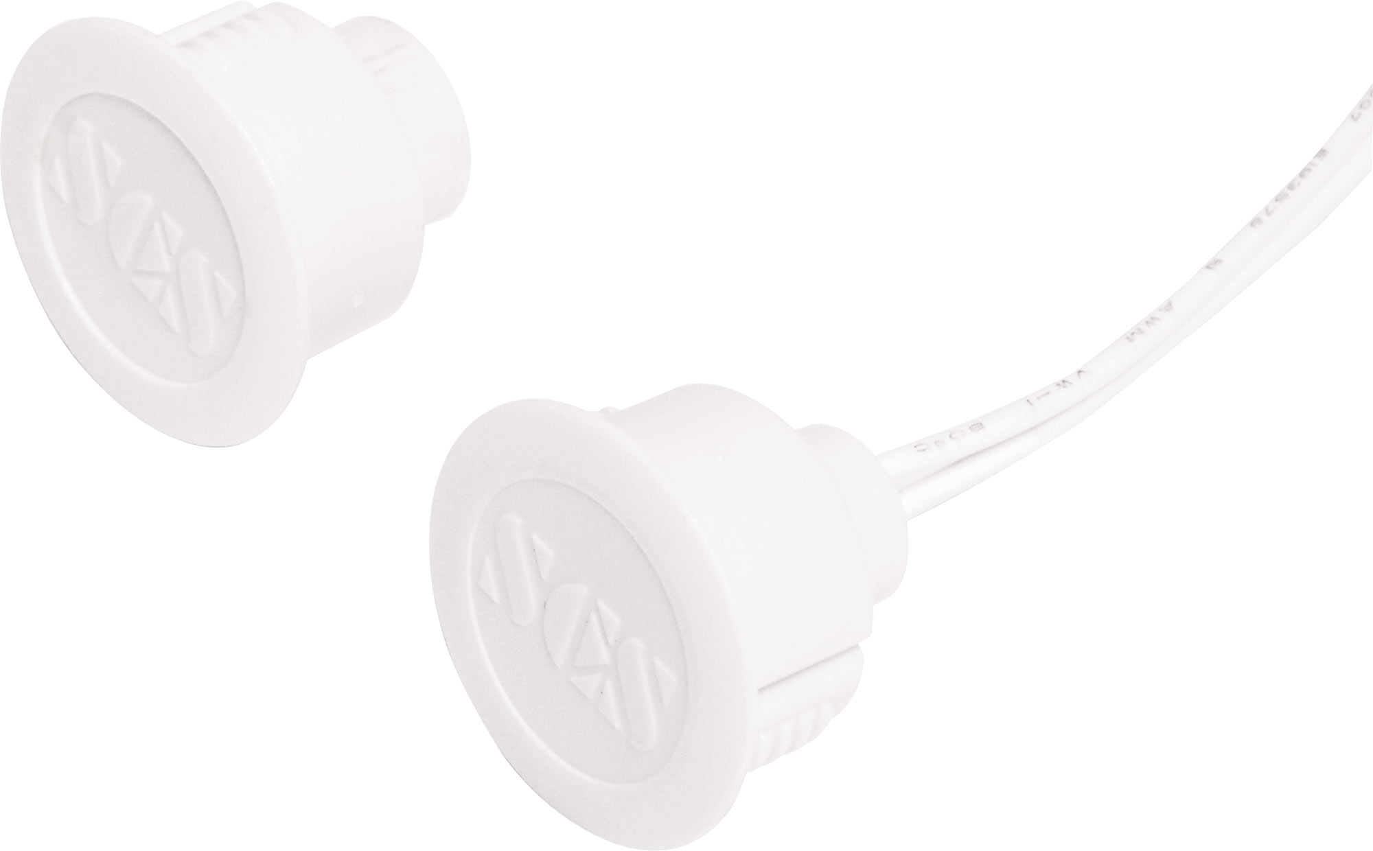 A concealed magnetic reed switch designed for use with metal door frames in security applications. Includes matching magnet. Press fit design.