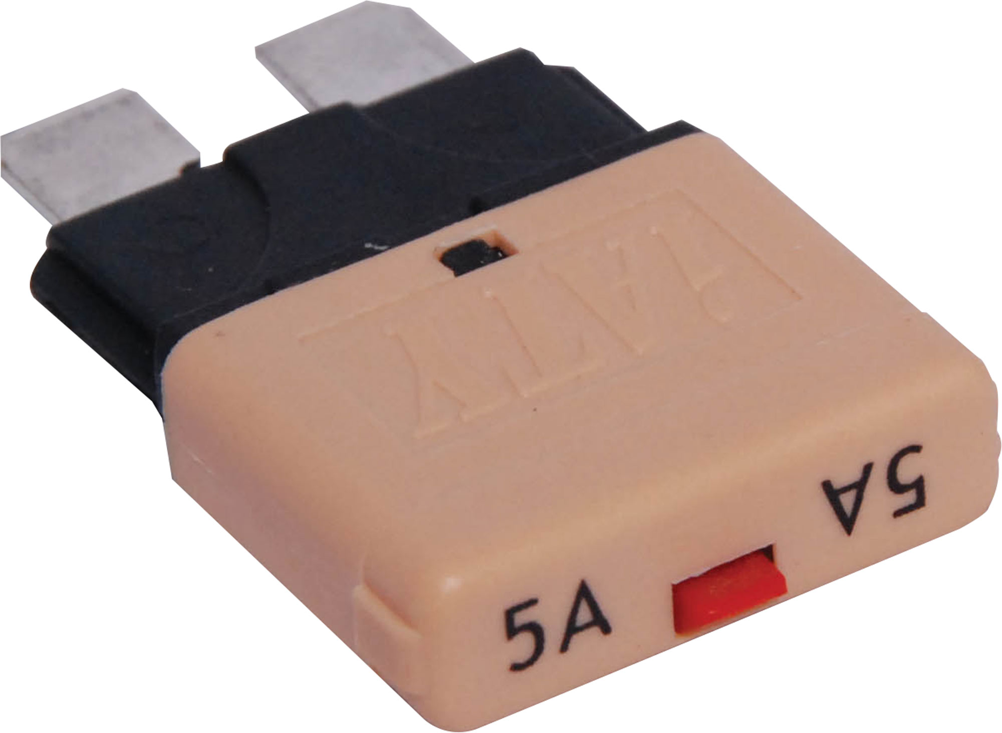 A resettable blade fuse style 5A circuit breaker suitable for 12V or 24V DC power systems. Suits most automotive blade fuse holders. A drop in replacement for automative blade fuses. Max voltage 28V DC. Resettable 5mm blades. Note: Due to the added height, these fuse/breakers are not suitable for use in some covered fuse blocks (Altronics S6024 or S6026) Dimensions: Trip Time vs % of Rated Current