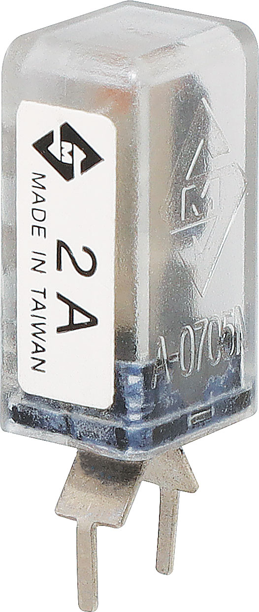 Current Trip Rating: 2 Amp All specifications at 25°C Hold Current: 100% load indefinitely Trip Current: Within 1 hr @ 175% load Within 1 minute @ 200% load Max. Voltage: 120V AC or 12V DC Dimensions: 20.6H x 10.5L x 8.7W mm