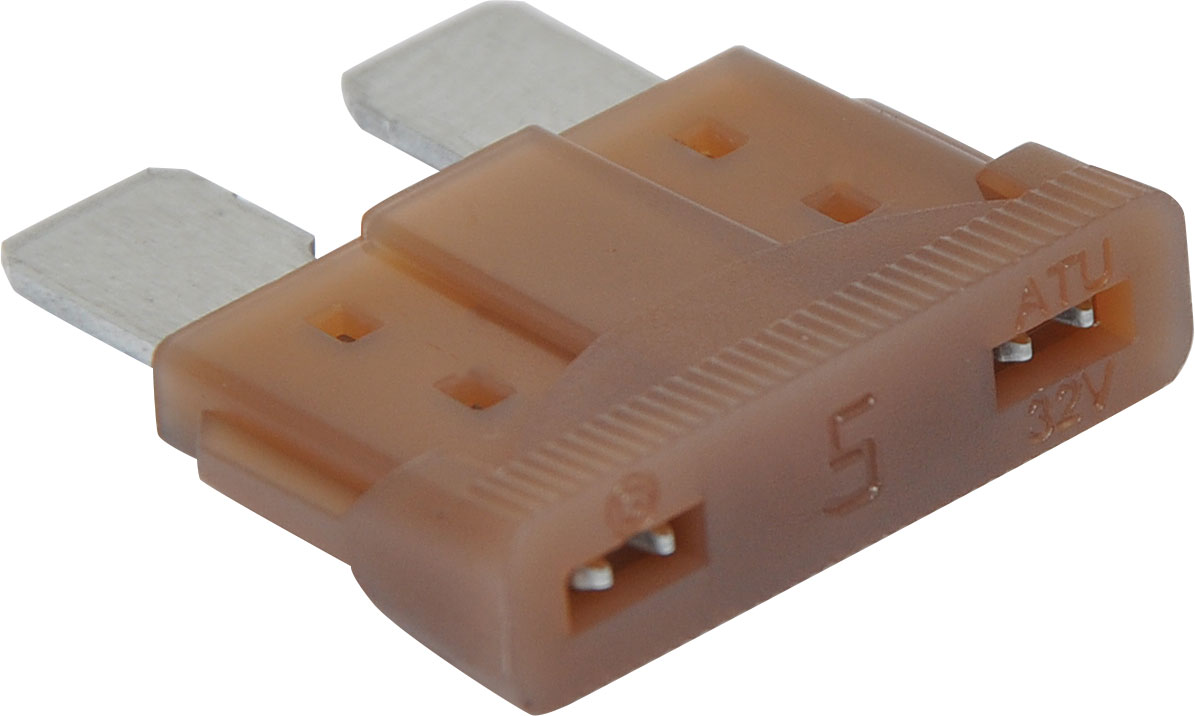 Brown. 5A. 5mm blades. 18.7 x 19.1 mm overall size. Standard automotive blade fuse with 32V rating. Suits most automotive blade fuse holders.