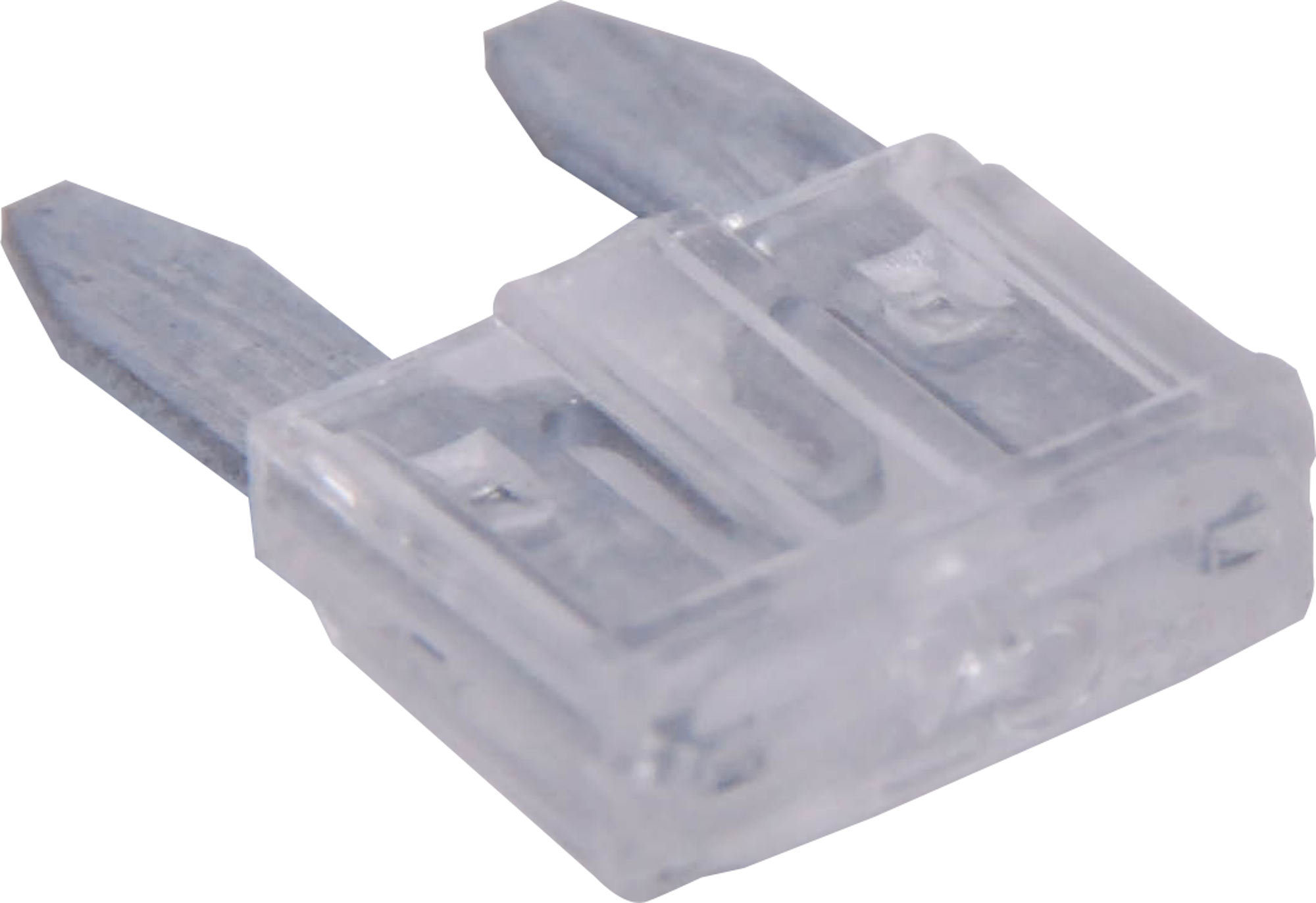 Clear. 25A. Mini blade fuses as used in many modern automobiles. Available in ratings from 3A to 30A.