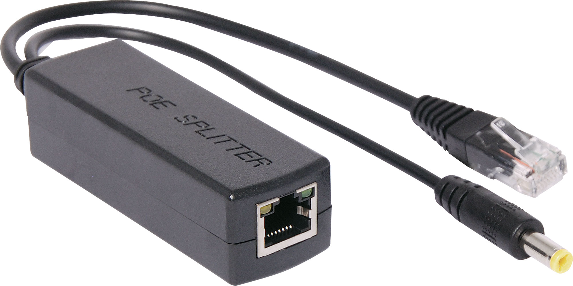 Allows you to power non PoE equipped devices from a 802.3at class 4 Power Over Ethernet RJ45 cable. Eliminates the need for a power supply at the camera end of the cable run. 12V, 15.4W max. This splitter features a 2.1mm plug.