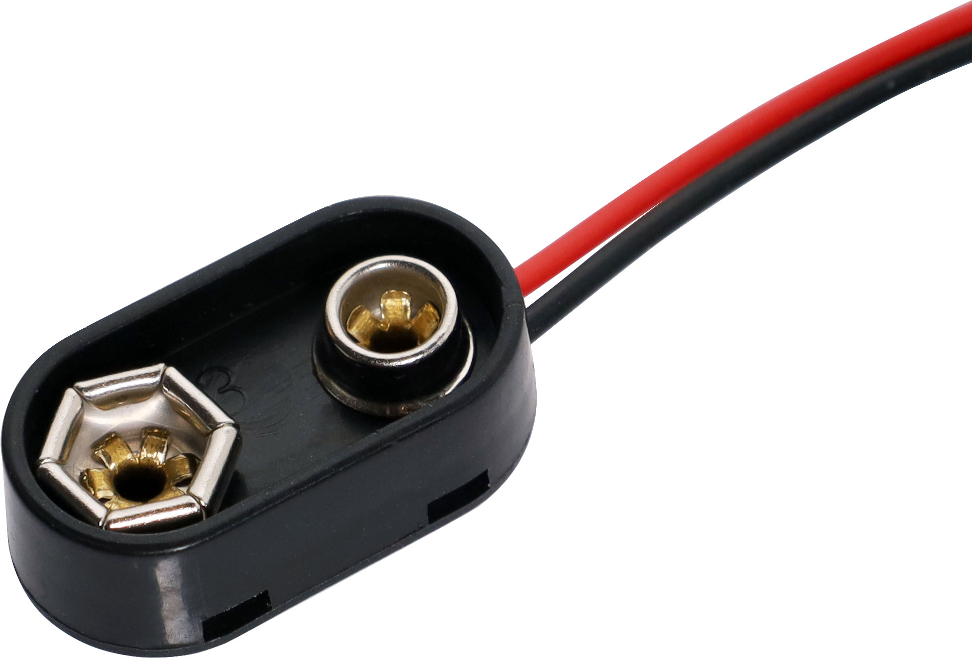 Battery snap clip to suit 9V batteries. These can also be used to connect to some of our battery holders which include an integral battery snap.