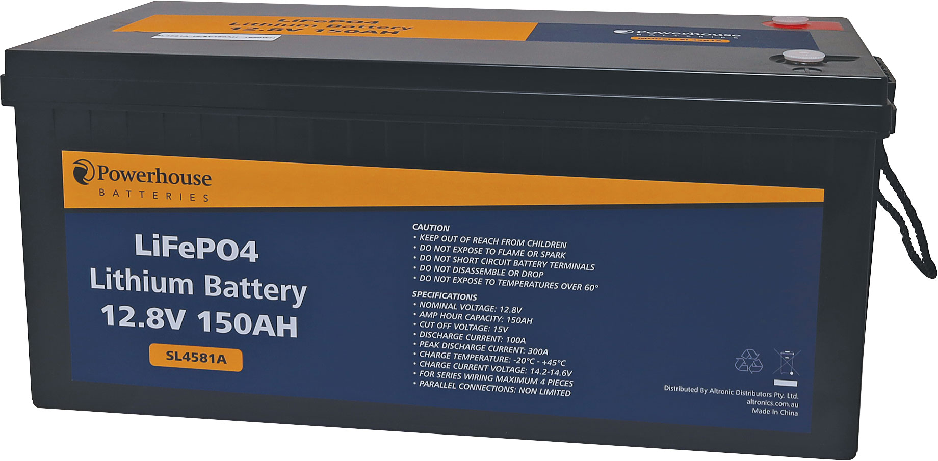 This 12V 150Ah LiFePO4 replacement battery is compatible in size with traditional 150Ah SLA batteries, but with all the benefits of cutting edge lithium technology. LiFePO4 batteries offer longer service life than traditional lead acid batteries, plus weigh less than HALF as much as SLA batteries. LiFePO4 also provide more usable life per cycle, allowing for longer run times by holding a higher voltage until capacity is almost exhausted. These batteries will also maintain 80-90% charge when in storage - far higher than their lead acid counterparts. The latest generation in maintenance free batteries is here! Each battery is fitted with an internal battery management system to provide safe charging and discharging at all times. This system provides internal short circuit, over temperature and under/over voltage cut off. Can be wired in series and/or parallel. Regardless of your wiring configuration it is technically best to individually charge each battery to 100% capacity using the same charger before connecting them. This ensures all batteries are at the same terminal voltage and will charge/discharge evenly. Factory supplied at 30% charge for safety compliance. Must be charged fully before use. Excessive temperatures over 65ºC can effect the ABS housing. Need to be well ventilated in warm conditions. Not for use in engine bays. IMPORTANT NOTE: A fixed installation of this battery in a recreational vehicle such as a caravan, camper or 4WD must adhere to Australian Standard AS/NZS 3001:2. We recommend all customers familiarise themselves with the standards requirements before using these batteries in fixed installations of this type. A professional installer should be consulted when a fixed battery installation is required in a recreational vehicle.