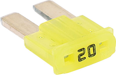 Yellow 20A standard automotive micro2 blade fuse. Also available in 5A, 7.5A, 10A, 15A, 25A and 30A (see related products below).