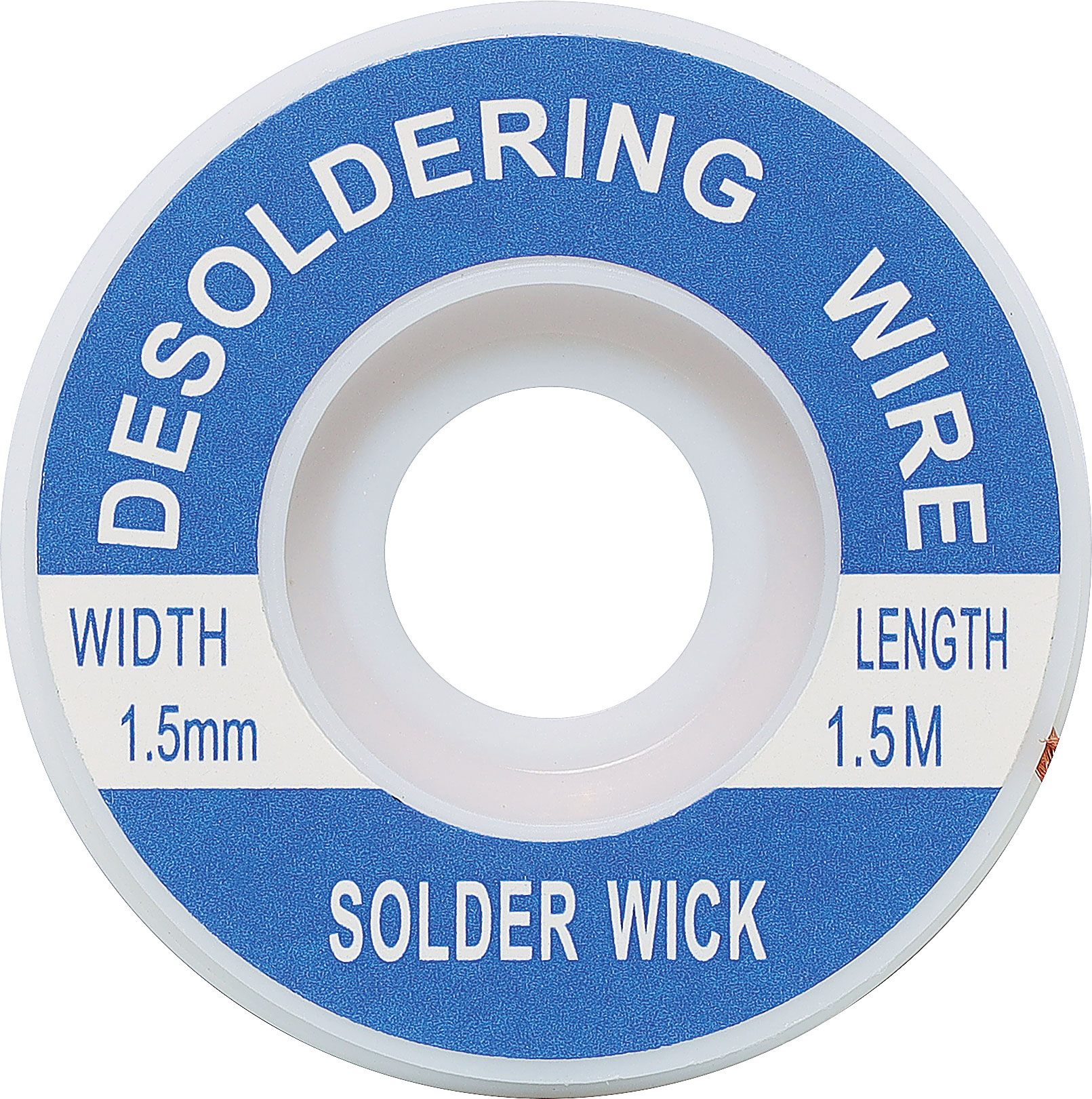 Simply apply this wick to the joint, heat with a soldering iron and the capillary action of the braid will draw the solder off. 1.5mm thickness. 1.5m length.