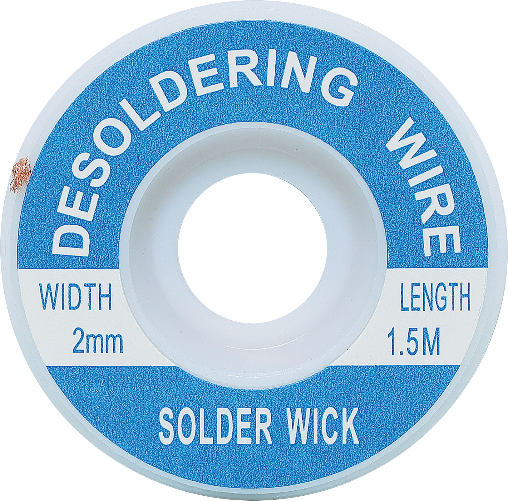 Simply apply this wick to the joint, heat with a soldering iron and the capillary action of the braid will draw the solder off. 2mm thickness. 1.5m length.