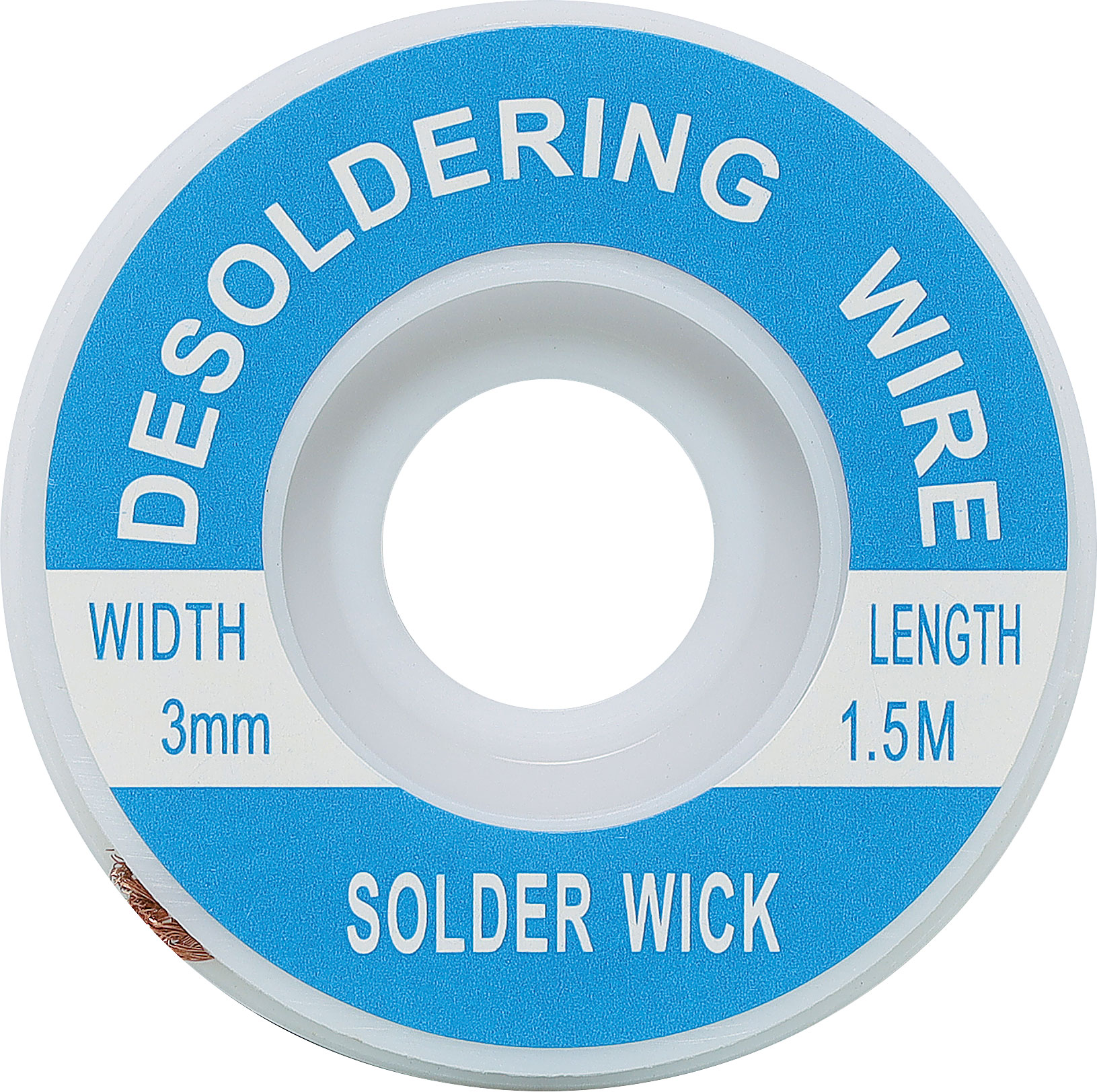 Simply apply this wick to the joint, heat with a soldering iron and the capillary action of the braid will draw the solder off. 3mm thickness. 1.5m length.