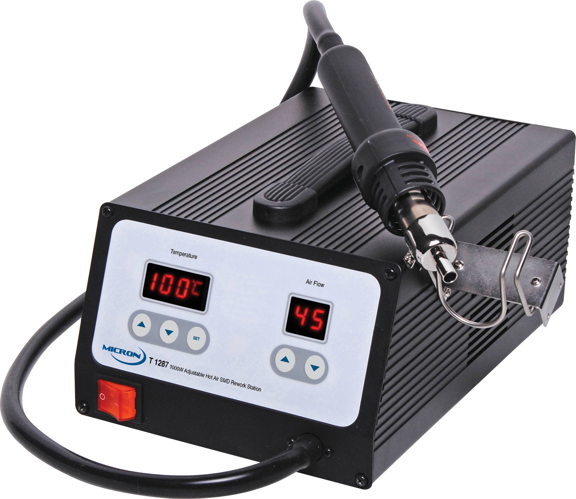 Provides a quick and easy way to rework boards fitted with surface mount devices, even in RoHS products. It works by blowing 600 watts of heated air onto the board your are working on, melting the solder on the SMD pads in the process.