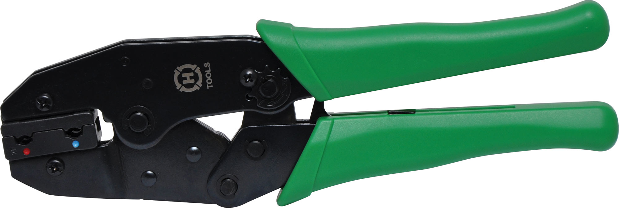 A specialised ratchet action crimper with comfortable grips and an all metal design to suit insulated red/blue, 90°, spade flag terminals. AWG16-14, 22-18.