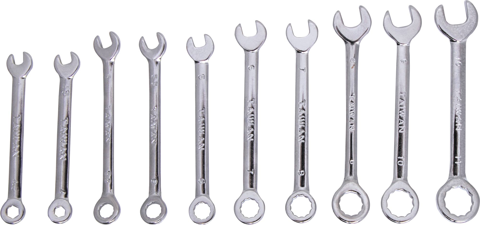 In our experience finding small spanners for working with electronics is always hard. The hardware stores and auto chains all stock sizes from 6mm upwards, but smaller sizes are usually very common in electronics. These spanners are great for securing a hex standoff when screwing down boards etc. Sizes included in this set: Open ends : 10mm, 9mm, 8mm, 7mm, 6mm, 5.5mm, 5mm, 5mm, 4mm, 4.5mm Ring ends : 11mm, 10mm, 9mm, 8mm, 7mm, 6mm, 6mm, 5.5mm, 4.5mm, 4mm