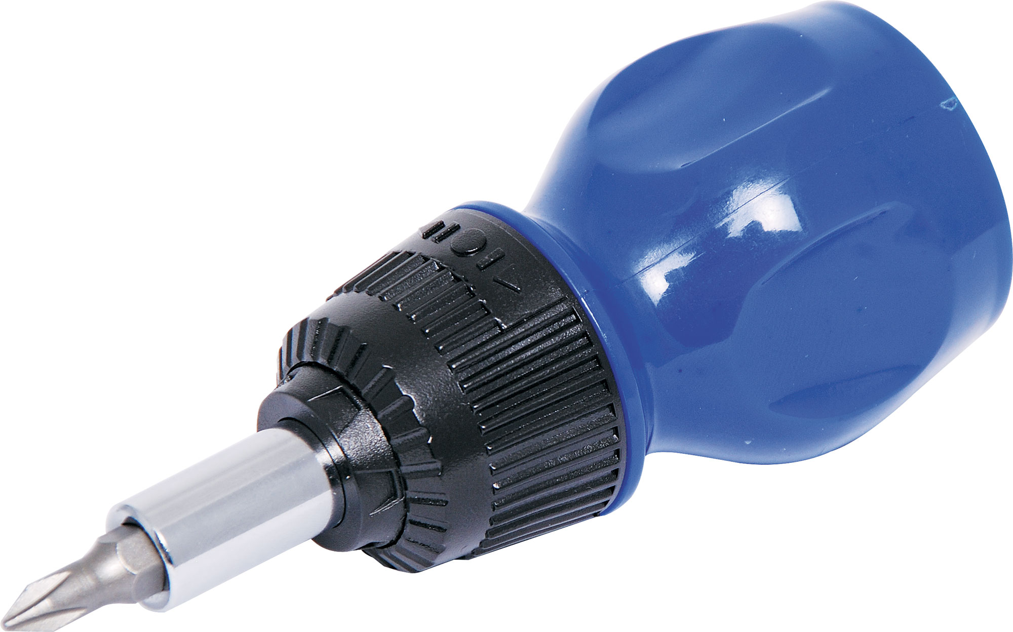 A handy ratchet driver for the car glovebox or tackling jobs around the house. Includes 7 driver bits in the handle, 3 flat blade, 3 Phillips, 1 square drive.
