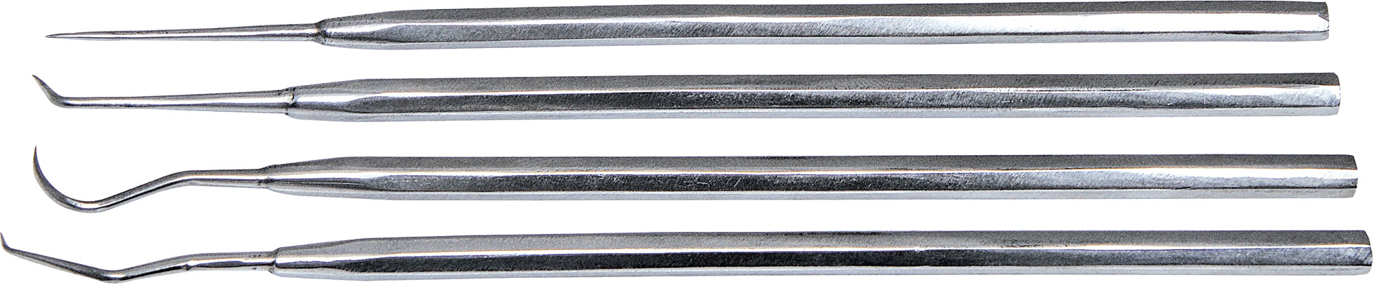This high quality tool kit featuring straight, angled, curved and hook tips is perfect for scraping varnish and flux away from solder joints on pcbs, marking plastic panels and removing spring washers etc.