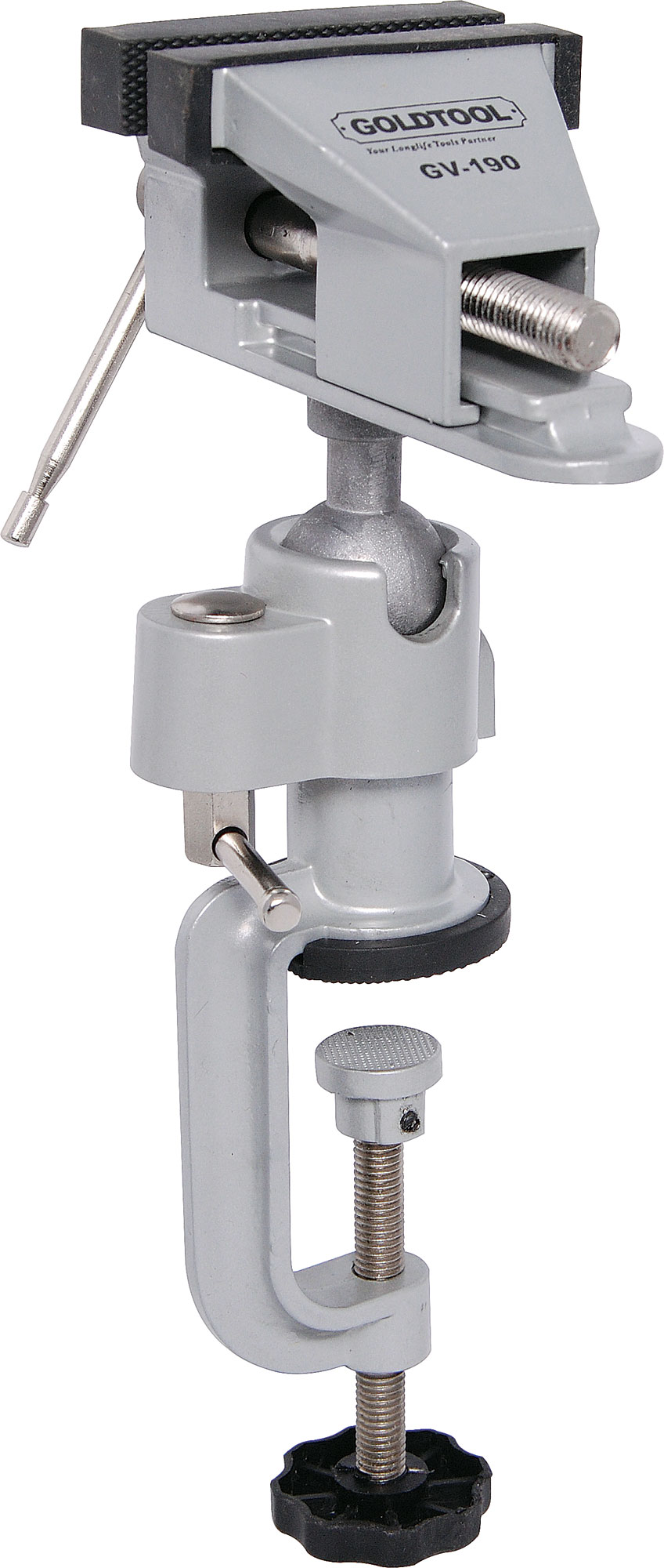 This 75mm mini gyroscopic bench vice was manufactures from die cast alloy and includes soft jaws for holding delicate connectors. The jaws open 55mm and the clamp will attach to any bench surface up to 53mm thick. The vice mount can be angled up to 45° in a 360° arc or locked into a 90° position for added flexibility. It''s like having an extra pair of hands!