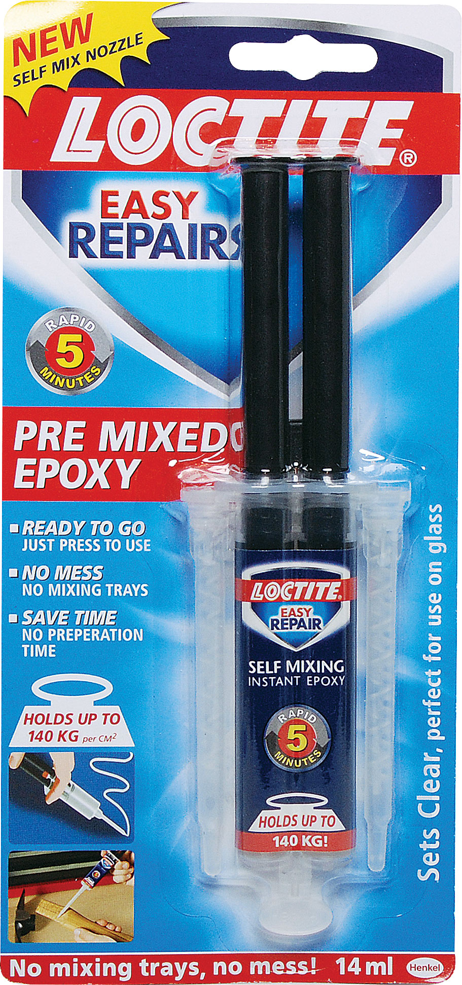 This compact tube of Loctite epoxy bonds in 4 to 7 minutes and will dry clear to maximum strength in an hour! It comes supplied in a handy 14ml, dual syringe to ensure accurate dispensation of glue.