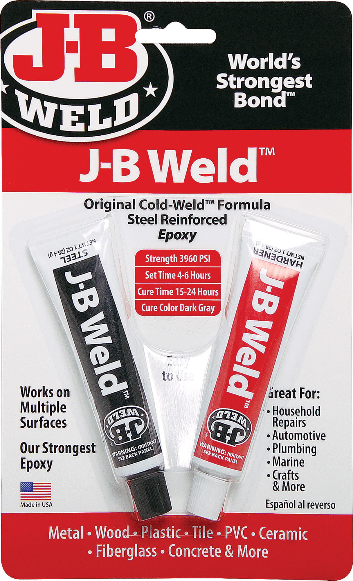 Don''t scrap that damaged item that nothing else can fix! JB WELD is an incredibly versatile product that can repair everything from damaged welds and solders to a precious heirloom. Save money, save time, and save your sanity for drastically less money than other forms of permanent repair.