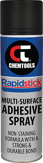 RapidStick™ multi-surface adhesive spray is an advanced and versatile rubber tack for adhering a variety of materials in applications ranging from light to heavy duty. It provides speedy bonding after a conveniently long open time to allow for the repositioning and adjustment of surfaces. RapidStick™ adhesive spray is expelled as a mist from a moderate flow-rate spray valve to provide over-spray control. It is ideal for industrial repair and improvements, framing, crafts, and other projects, and is suitable for affixing most metals, felt, cork, fabrics, plastics, paper, corrugated cardboard, wood, and a variety of other materials. Applications Include: Home improvements and repair Picture framing and scrapbooking Bonding fabrics General decorating, crafts and other projects