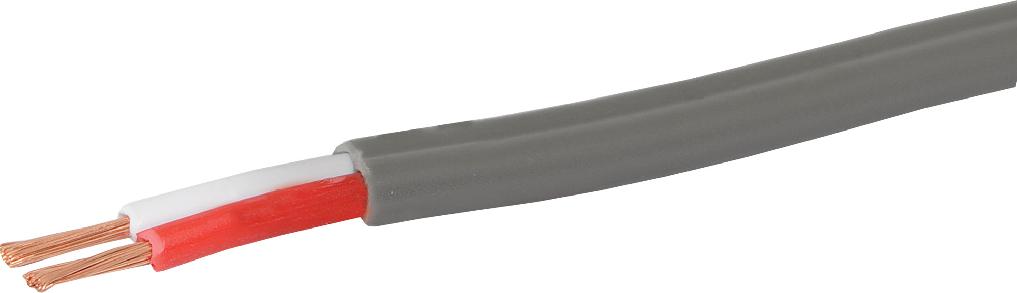 Speaker cable for 100V line commercial PA audio systems. Double PVC insulated twin. Separate conductors with non-bonded sheath.