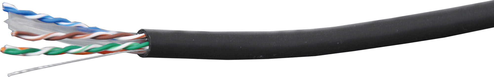 U/UTP (unshielded twisted pair) network cable with UV stabilised sheath for exterior use.