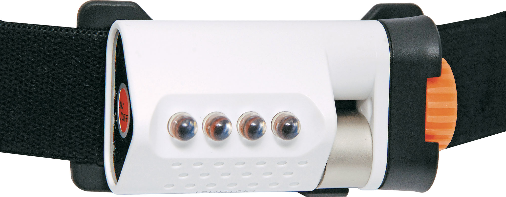 Incorporates 4 high brightness white LEDs with an adjustable elastic headband. Light assembly features a metal reinforced bracket and tilts down to direct light where you need it. Ideal for working in dimly lit areas such as equipment cupboards or leisure