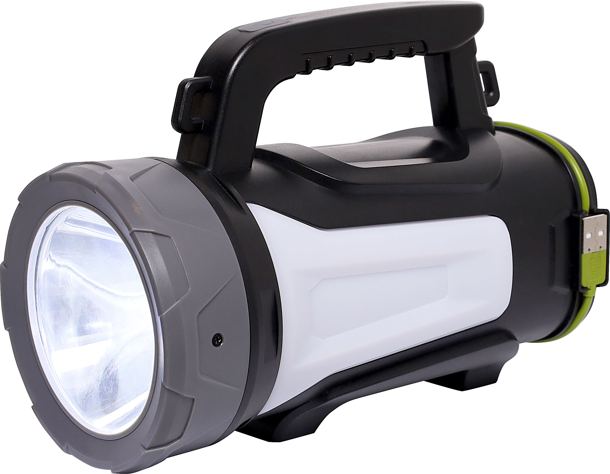 Ideal for camping, roadside emergencies and a variety of uses around the home. It can be used as an LED lantern, torch and USB battery bank for keeping devices charged when camping. It features multiple light modes: lantern high/low, red emergency high/flash, torch high, low and strobe. The torch body is built from durable high strength ABS making it ideal for the rough and tumble of any camping trip. The torch can be recharged using the integral USB cable or micro USB port. Internal battery: 4800mAh. The torch features the following 7 Operation modes; LED High, LED Low, LED Strobe, White SMD High, White SMD Low, Red SMD On and Red SMD Strobe.