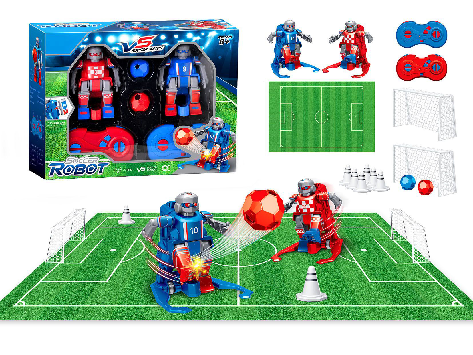 Create your own family world cup with these fun football robots. 2 players included with pitch (1m x 0.8m), goals, ball and cones. Expandable up to 12 players! Easy recharging via USB for up to an hour of play. This robot toy set is suitable for children aged 3+ Requires 2 x AAA battery (sold separately).