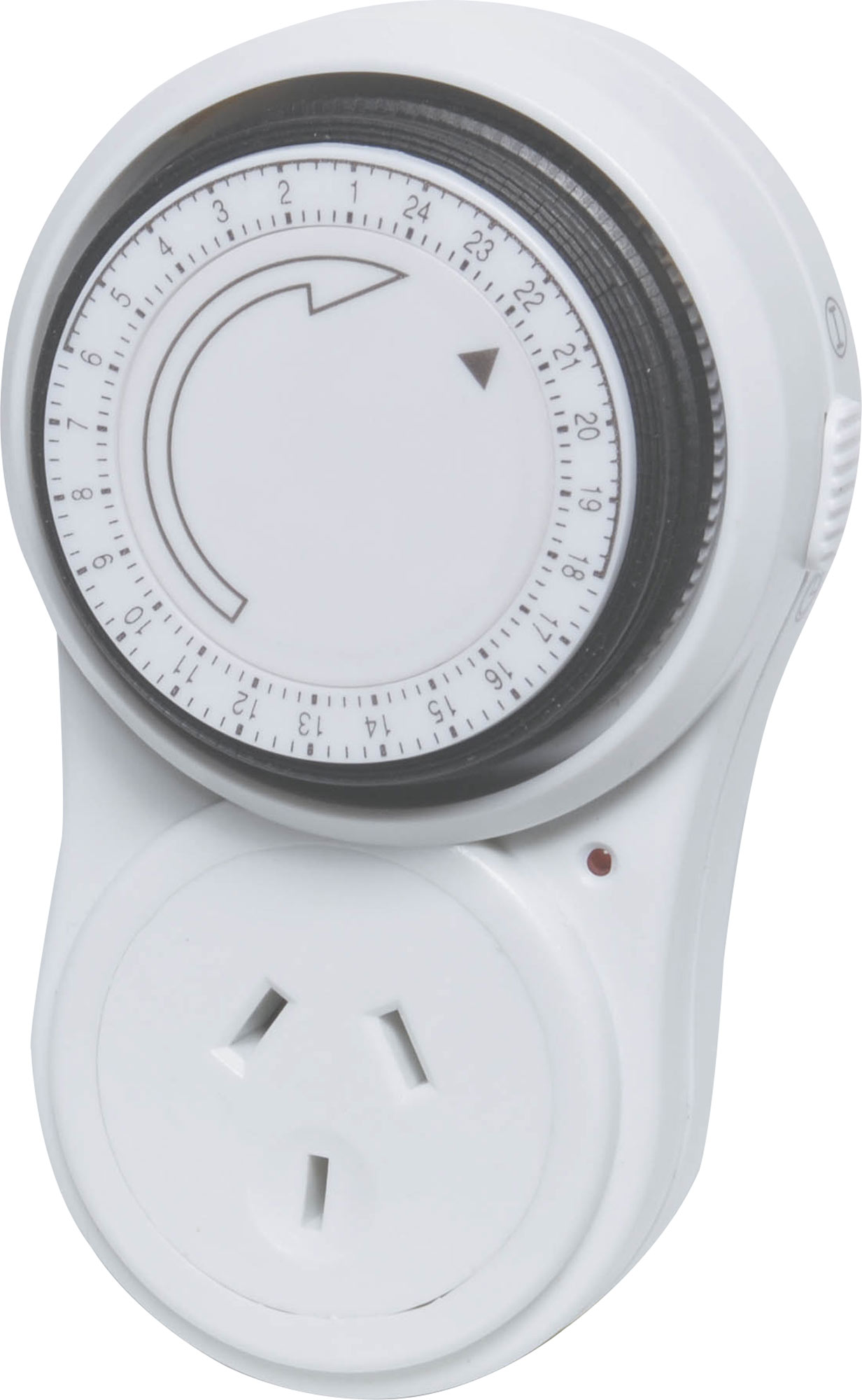 Standard 24 hour 240V mains timer. Allows easy selection of ON and OFF times at any 15 minute interval in a 24 hour period. Power down office appliances when you don't need them, for instance the coffee machine or photocopier after 5pm.