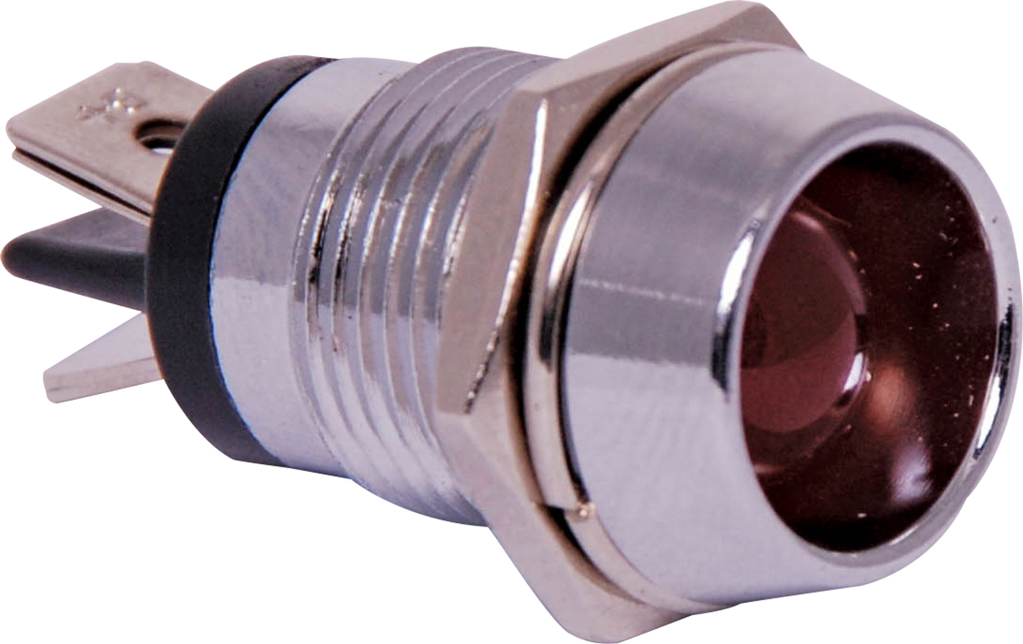 10mm Red LED with chrome bezel, 6.35mm tab connection.