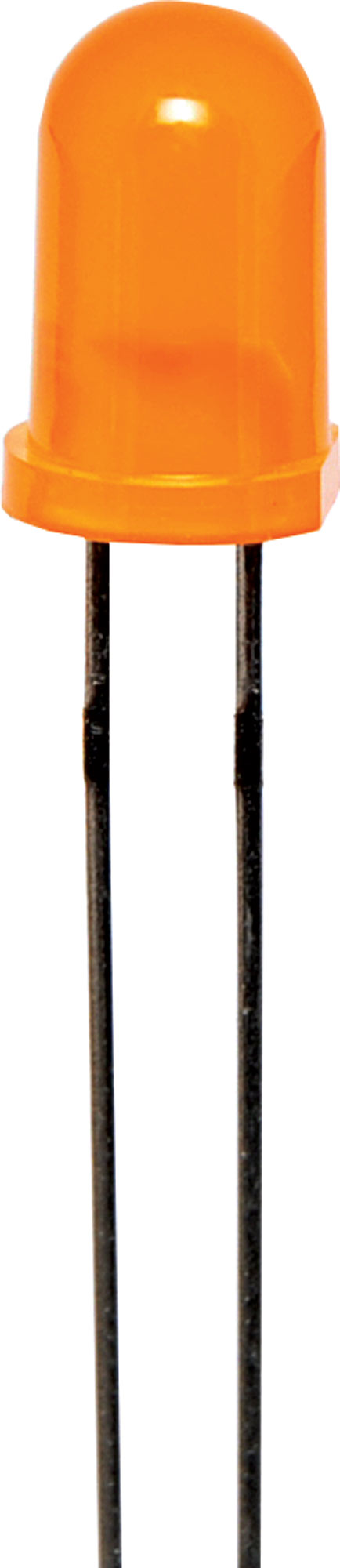 Standard type 5mm orange LED. Diffused light with orange tinted flanged housing. 80mcd light output makes it ideal as a low level indicator for power/signal etc.