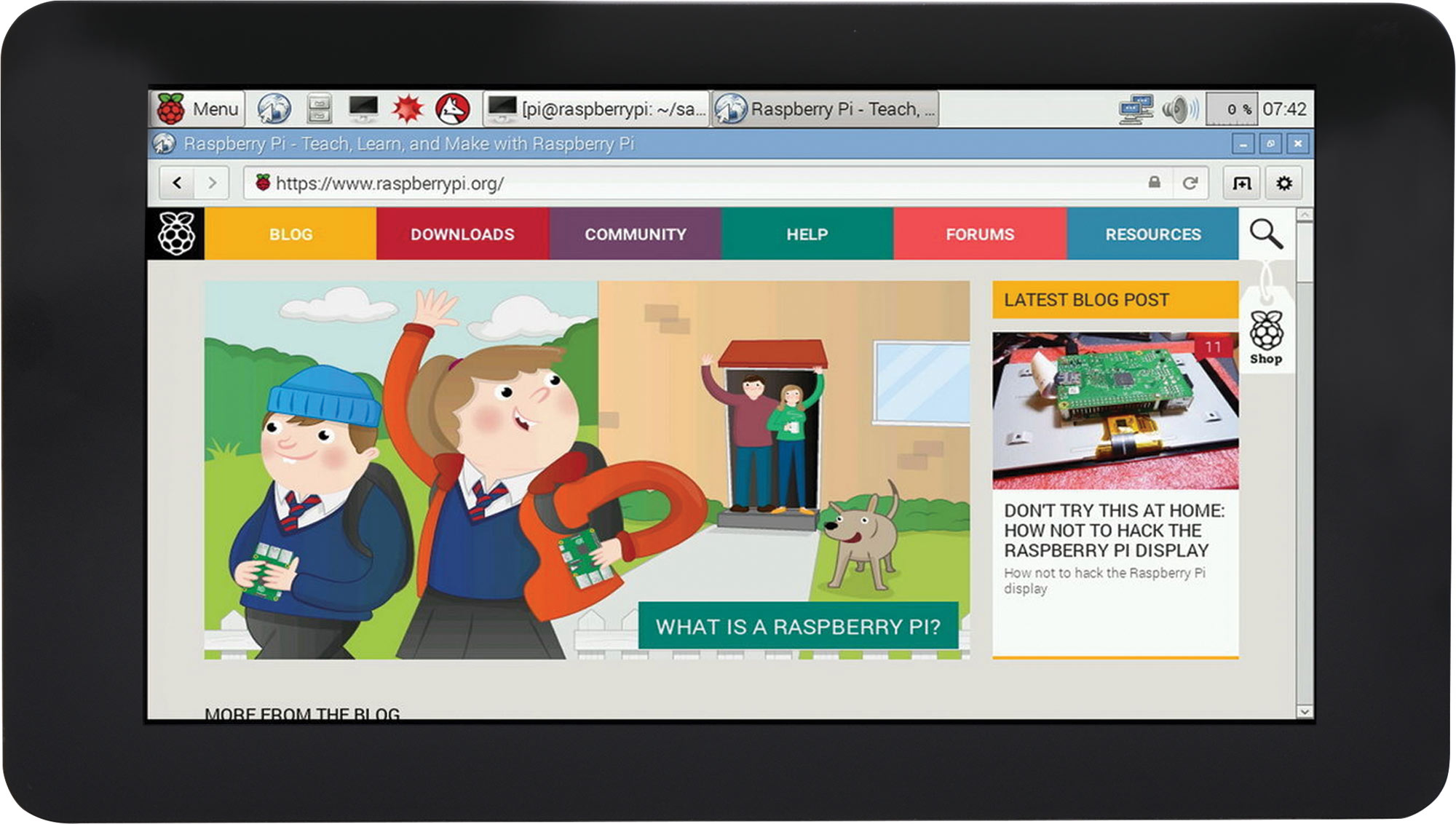 The 7" Touchscreen Monitor for Raspberry Pi gives users the ability to create all-in-one, integrated projects such as tablets, infotainment systems and embedded projects. The 800 x 480 display connects via an adapter board.