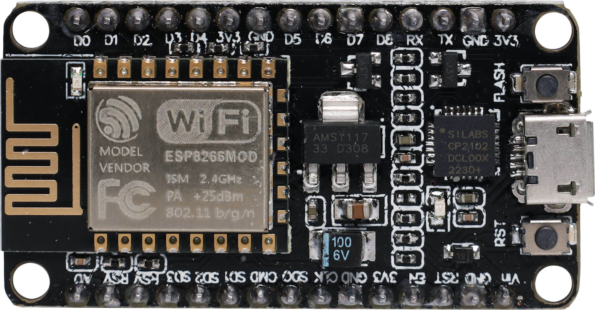 An Arduino compatible development board featuring WiFi making it ideal for plug-and-play projects.The board also features its GPIO broken out, a full USB-serial interface, NodeMCU pre-flashed and a power supply all on the one breadboard-friendly package.